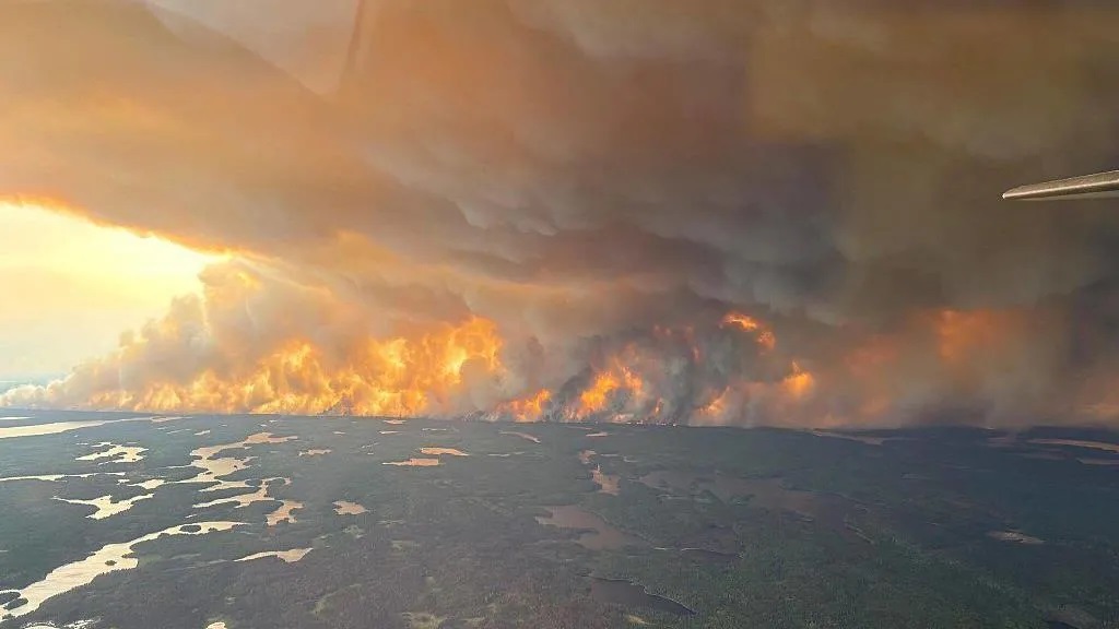 In Manitoba, the entire city of Flin Flon has been emptied, except for firefighters and support workers, as a large blaze threatens the community.