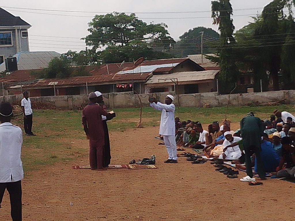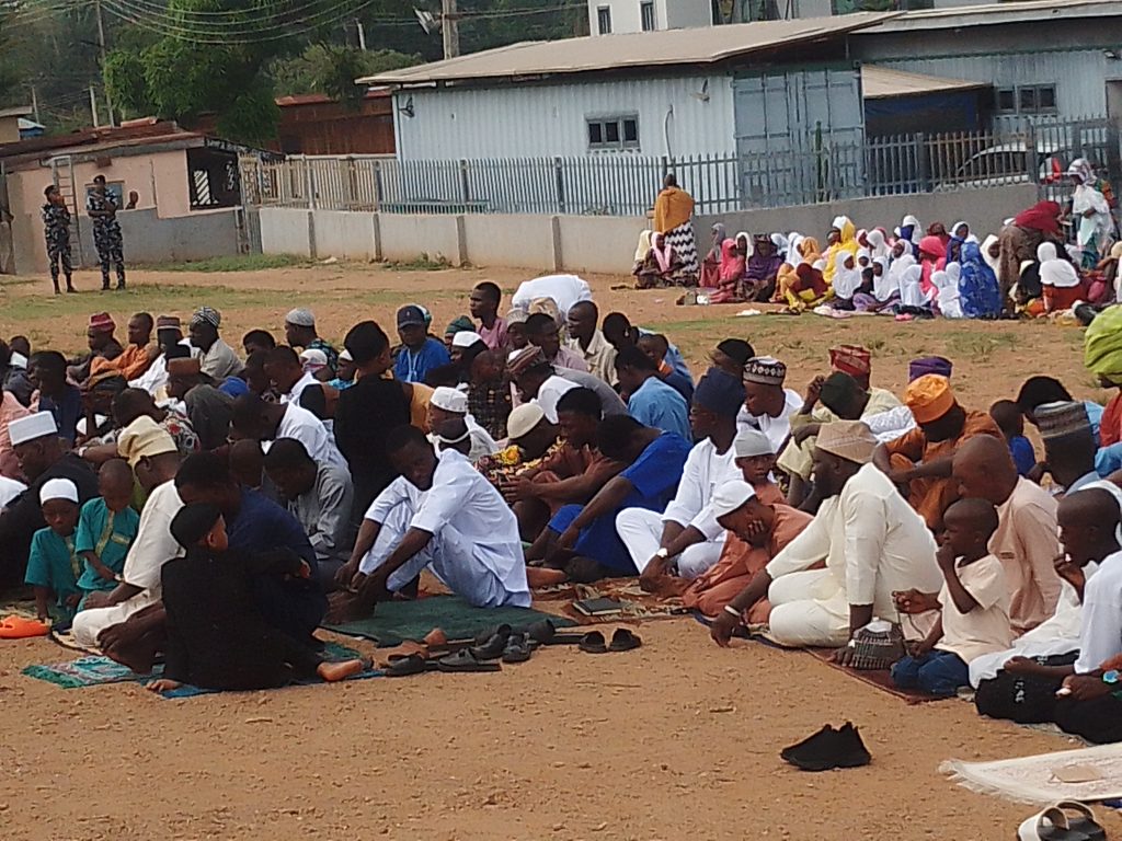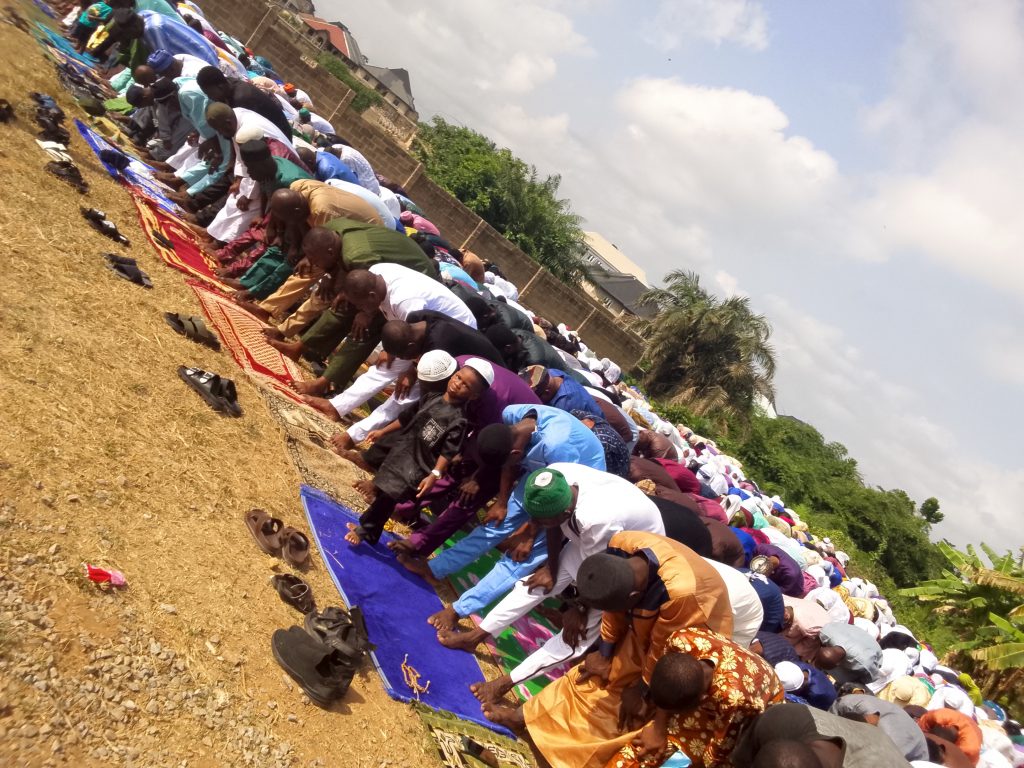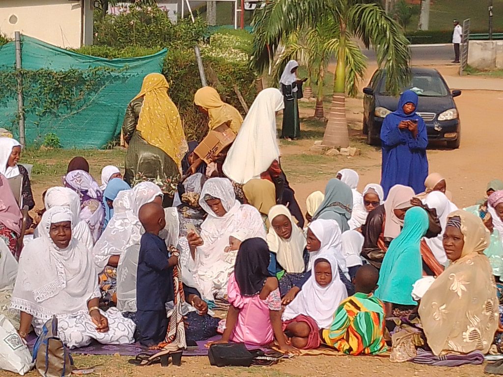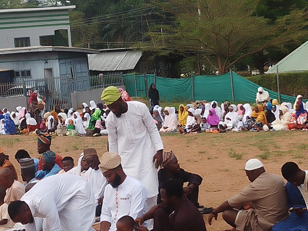 The Muslim congregation on the Ahmmadiyy Muslim Jamm’at’s Eld-el-Fitri Praying Ground at the International Institute of Tropical Agriculture, IITA, Police Post, Idi-Ose, Moniya, Ibadan.