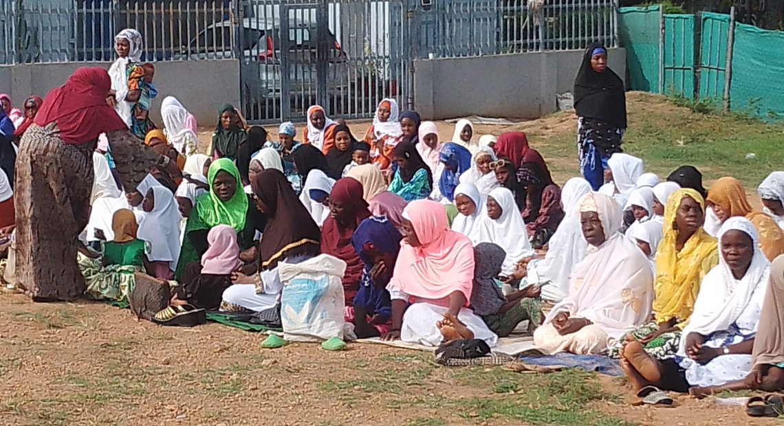 The Muslim congregation on the Ahmmadiyy Muslim Jamm’at’s Eld-el-Fitri Praying Ground at the International Institute of Tropical Agriculture, IITA, Police Post, Idi-Ose, Moniya, Ibadan.