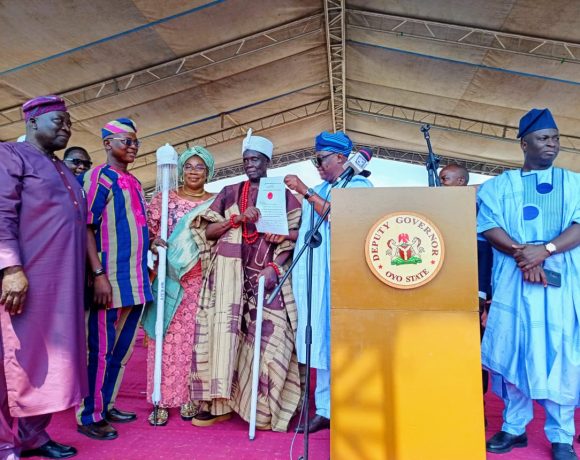 Presenting the instruments of office to the newly-elevated royal fathers, including the Alago-Oja of Ago Oja, Alajagba of Ajagba, Onimeleke of Imeleke, Alaaguo of Aguo, and Alapaara of Apaara, Governor Makinde, who was represented by the Deputy Governor of Oyo State, Bayo Lawal, said his administration remains committed to upholding and strengthening the state’s traditional institution.