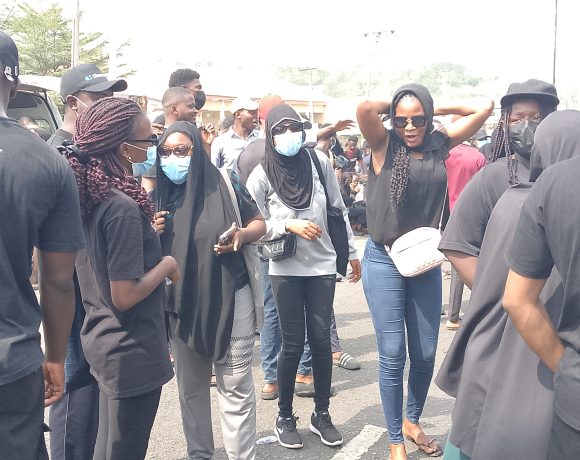 The aggrieved students, who were cladded in black clothes, chanted solidarity songs and barricaded Queens Elizabeth Road linking Mokola and Gate.